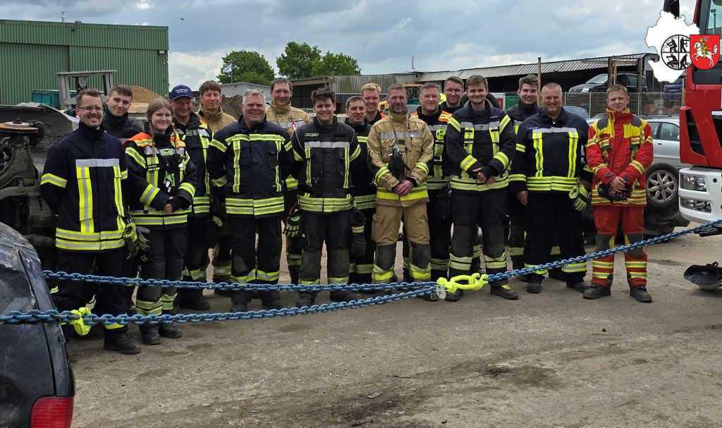 Vielen Dank an die Firma Möller in Heide, für das bereitstellen von 12 Schrott-PKW's, was in der jetzigen Zeit sehr schwierig ist. Bei diesem Lehrgang ist es besonders wichtig das Fahrzeug bereitgestellt werden um den Teilnehmern es praktisch beüben zu lassen.