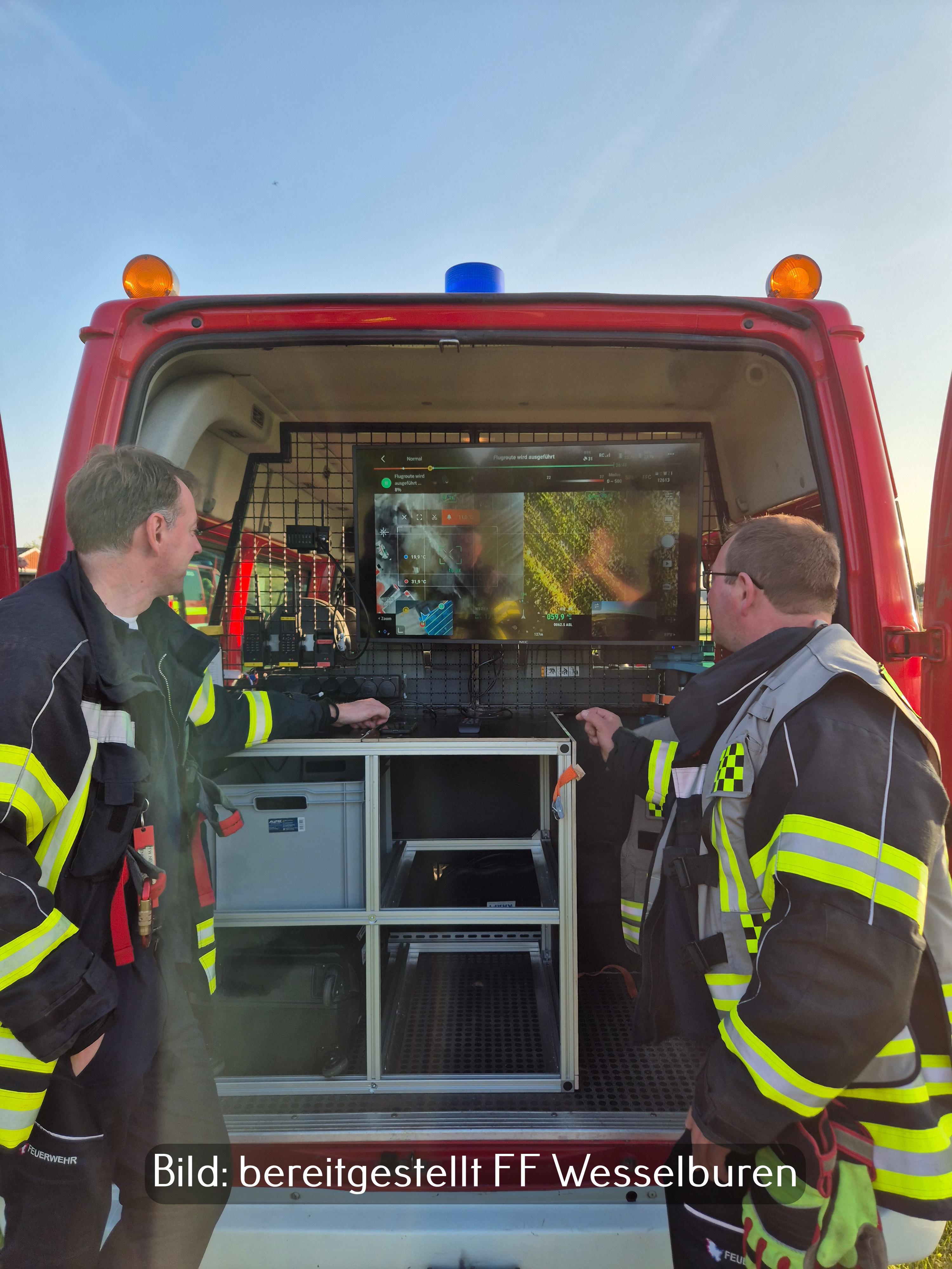Das Wesselburener ELW baute sich auf dem Parkplatz auf und leitete den Einsatze zusammen mit dem Einsatzleiter von dort.