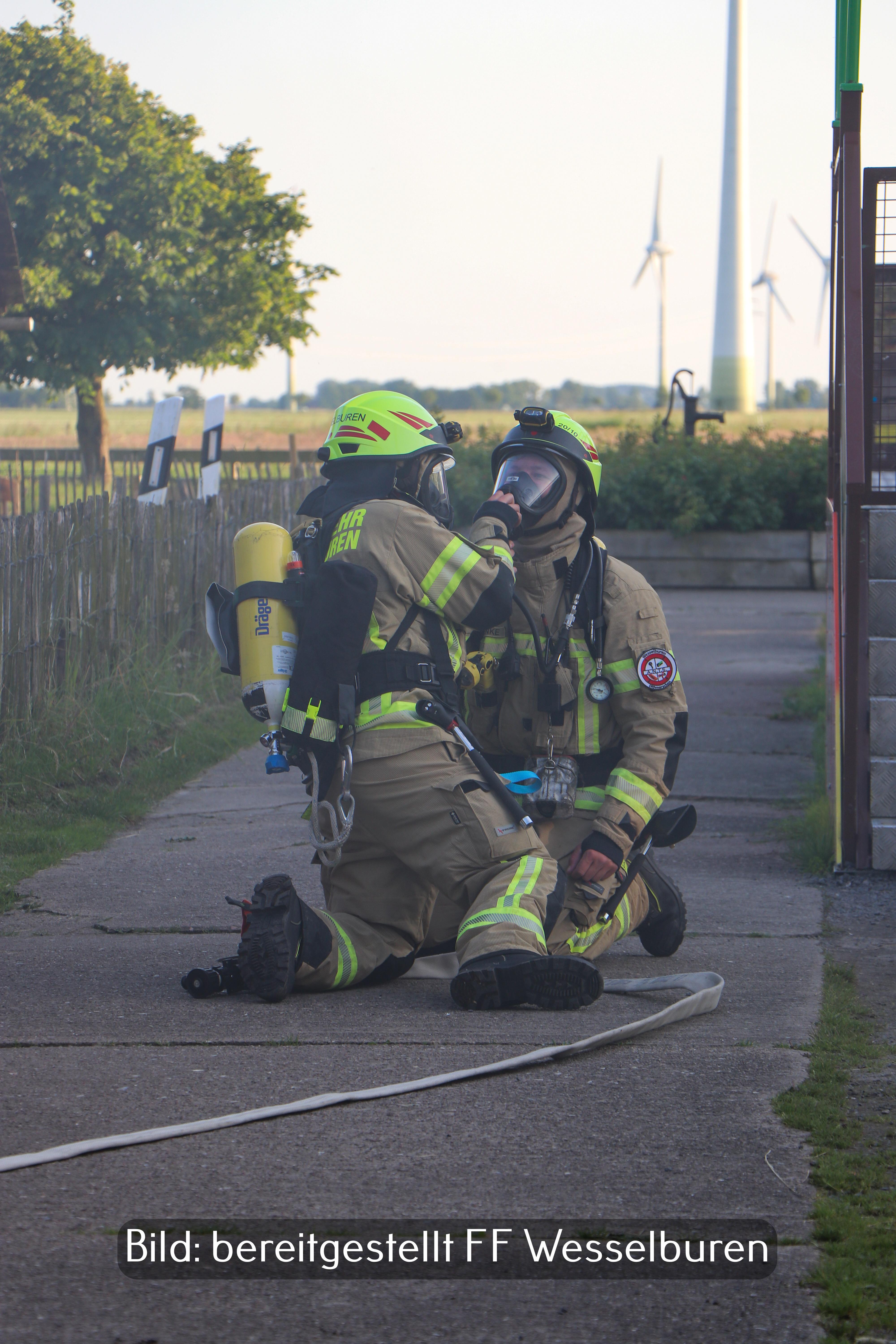Unter dem Stichwort "FEU G Y R5" (Feuer größer Standard mit Menschenleben in Gefahr und mehr als 5 Verletzten) wurden am vergangenen Freitag die Feuerwehren Wesselburen, Süderdeich und Neuenkirchen zum Freizeitpark "Land und Leute" zu einer Übung gerufen.