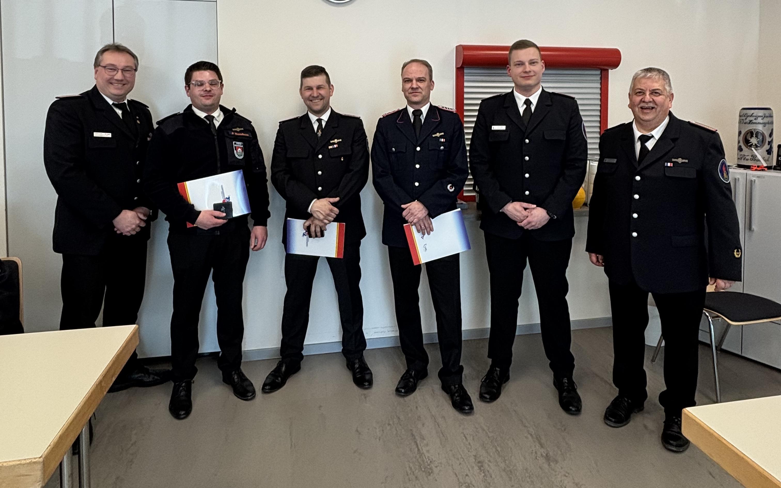 Im Anschluss wurden Marvin Schlüter, Stephan Tybusch und Manuel Neumann mit der Leistungsspange in Bronze der Schleswig-Holsteinischen Jugendfeuerwehr geehrt. Stellvertretender Kreisjugedfeuerwehrwart