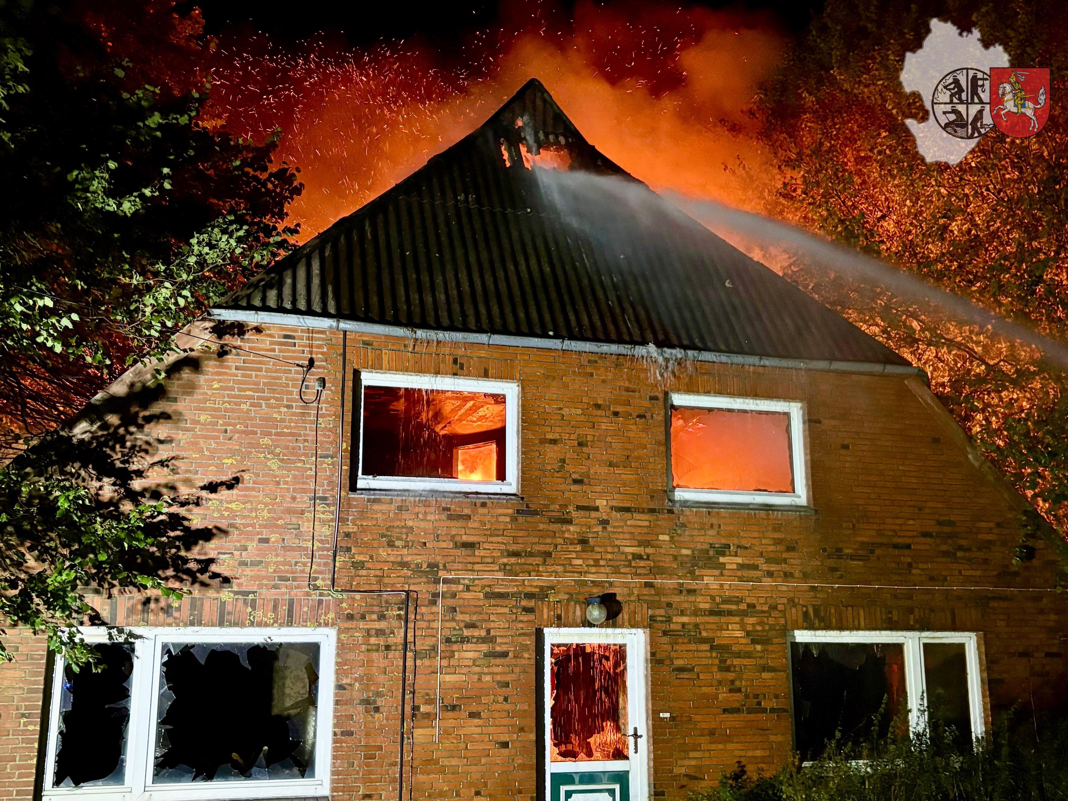 Schülp - In der Nacht brach aus bisher unbekannter Ursache in einem leerstehenden Gebäude ein Feuer aus. Gegen vier Uhr morgens wurden die Brandbekämpfer durch die Leitstelle alarmiert. Der Brand hatte sich zu diesem Zeitpunkt bereits auf das gesamte Objekt ausgebreitet und forderte einen massiven Löscheinsatz. Erst gegen sechs Uhr konnte der Leitstelle "Feuer unter Kontrolle" gemeldet werden.