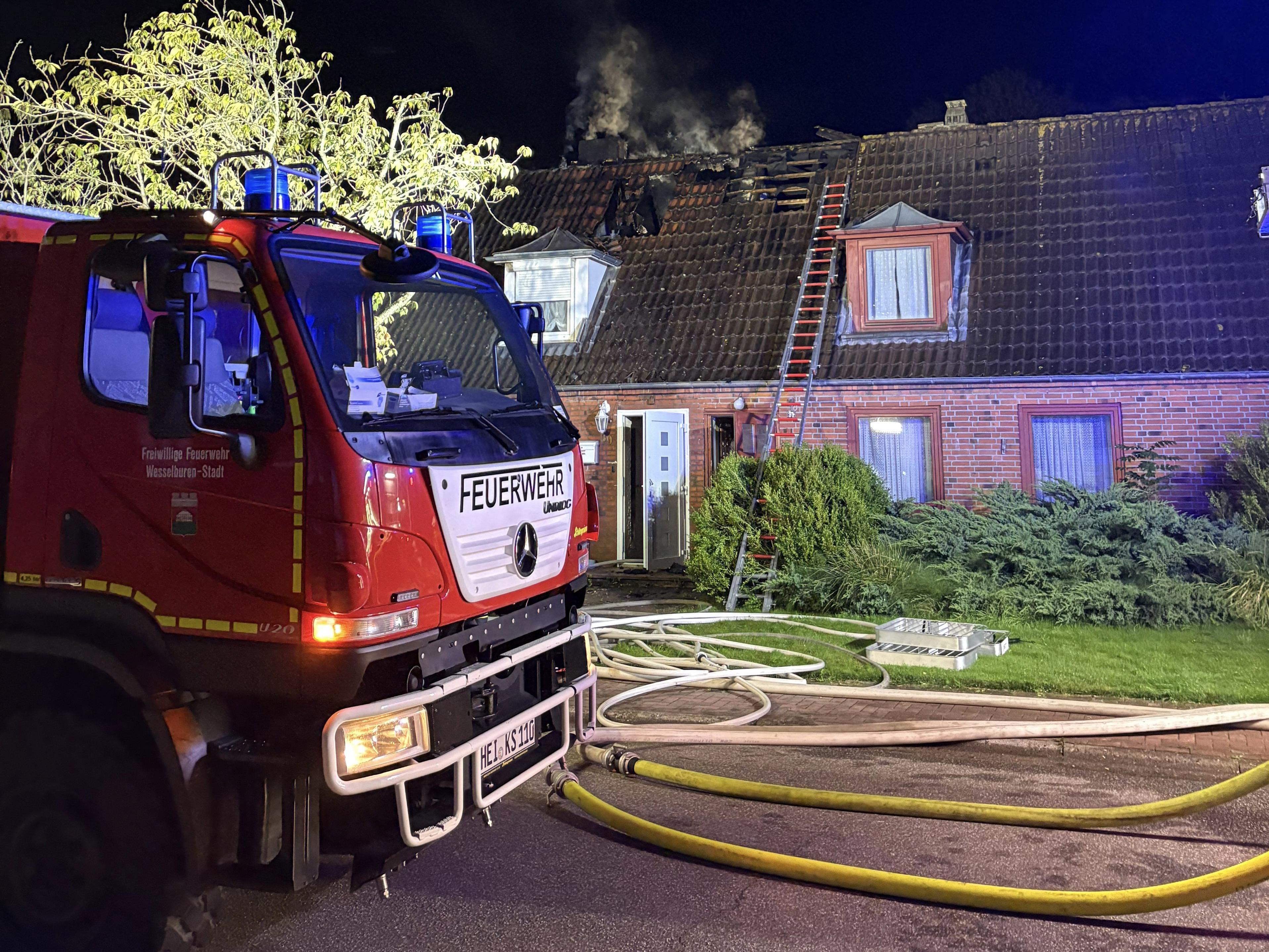 Wesselburen- Kurz vor Mitternacht alarmierte die Leitstelle die Feuerwehren Wesselburen und Süderdeich zu einem Dachstuhlbrand. Beide Wehren waren bereits am frühen Morgen bei einem Großfeuer in Schülp im Einsatz gewesen.