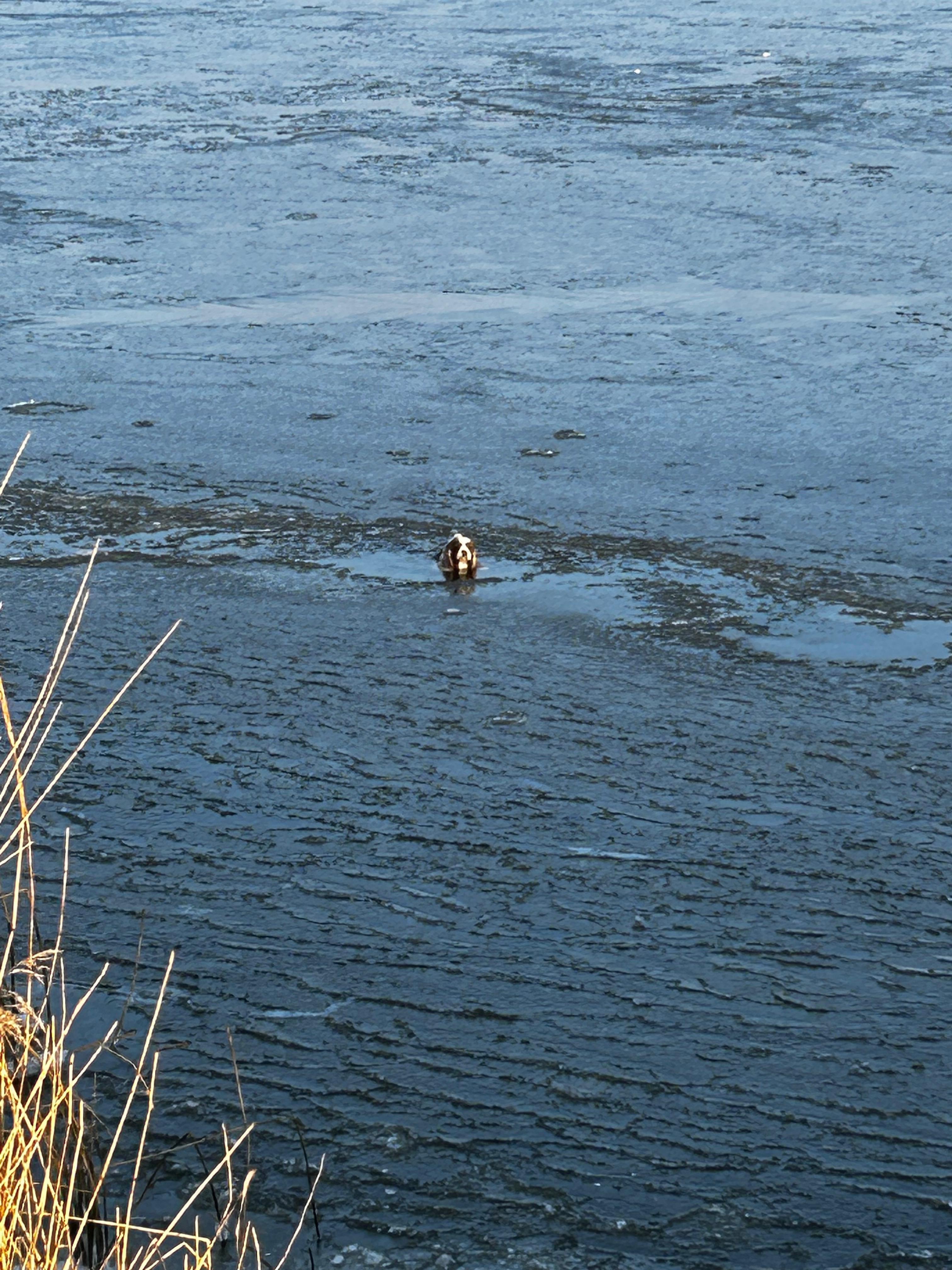 Glücklicherweise war die Stelle nicht allzuweit vom Ufer entfernt, so dass wir im Überlebensanzug die Hundedame zwar frierend und nass, aber ansonsten wohlbehalten, schnell an ihre Besitzerin übergeben konnten.