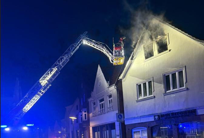 Heide - Um 02:17 Uhr alarmierte die Kooperative Regionalleitstelle West die Feuerwehr Heide in Zugstärke zu einem Feuer in einer Wohnung. Bereits wenige Minuten später wurde das Stichwort auf FEU G (Feuer größer als Standard) erhöht, da die Dachgeschosswohnung eines Mehrfamilienhauses bereits in Vollbrand stand.