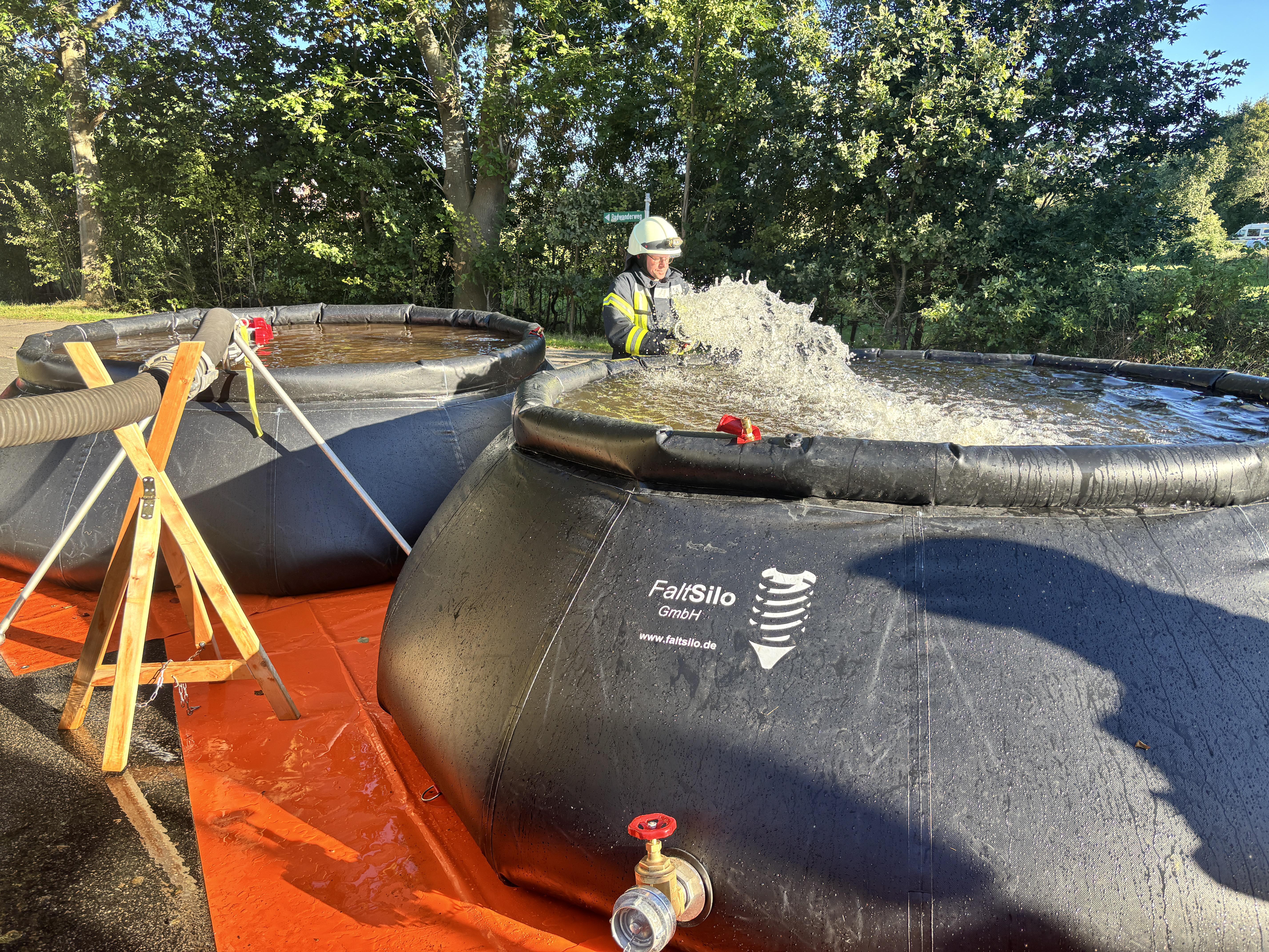 Hochdonn - Gegen 15:30 Uhr wurde die Feuerwehr Hochdonn mit der Burger Wehr zu einem Feuer in einer Tischlerei gerufen. Innerhalb kürzester Zeit entwickelte sich das Feuer zu einem Großbrand. Die Löschwasserversorgung aus dem öffentlichen Hydrantennetz hielt der großen Abnahme von Löschwasser, bedingt durch den Einsatz von zei Drehleitern und mehreren C-Strahlrohren, nur bedingt stand. Landwirte und Faltbehälter sorgten für Abhilfe.